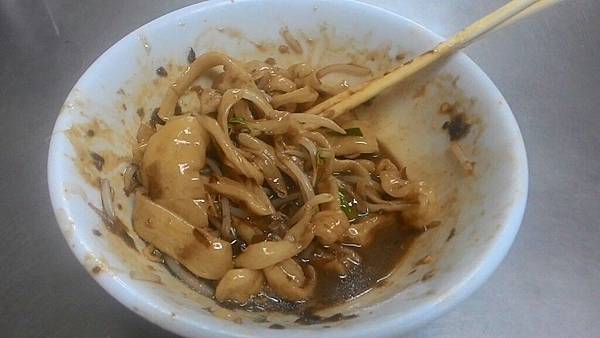 整碗麵拌均勻後吃起來就是麻將味與肉醬味加上豆芽菜的清脆麵的口感咬勁