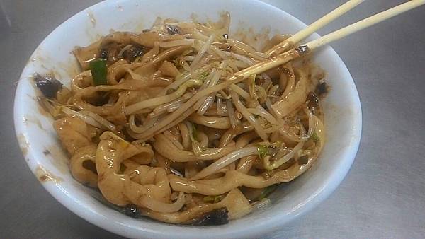 配菜:豆芽菜鋪在麵的底層與麵一起吃會讓麵有有清脆的口感,與韭菜的濃濃韭菜味(挑食的人應該不喜歡)
